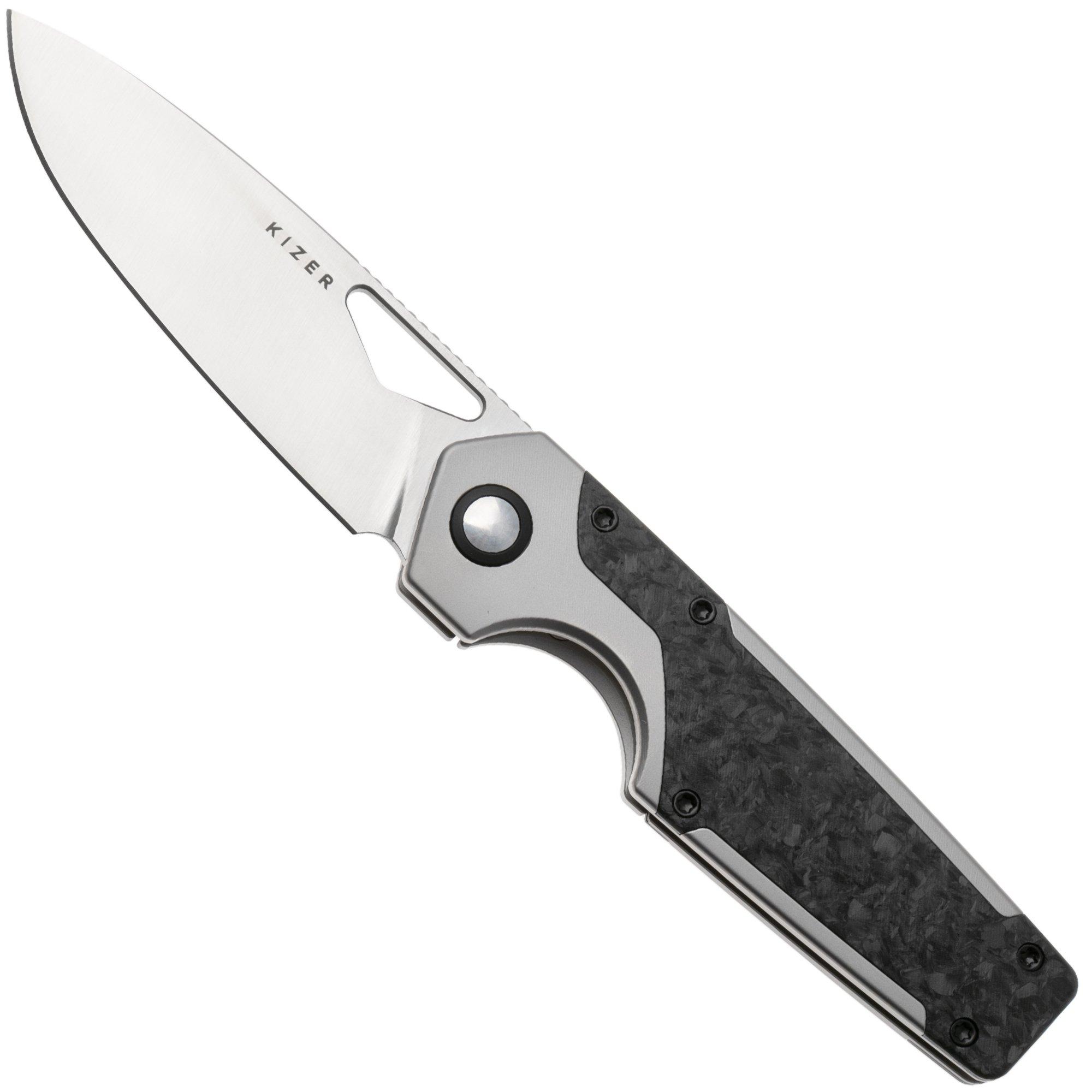 Kizer Serpentine KI3759FDA1 Satin Elmax, Titanium & Carbonfiber Inlays, navaja, diseño de Jonathan Styles